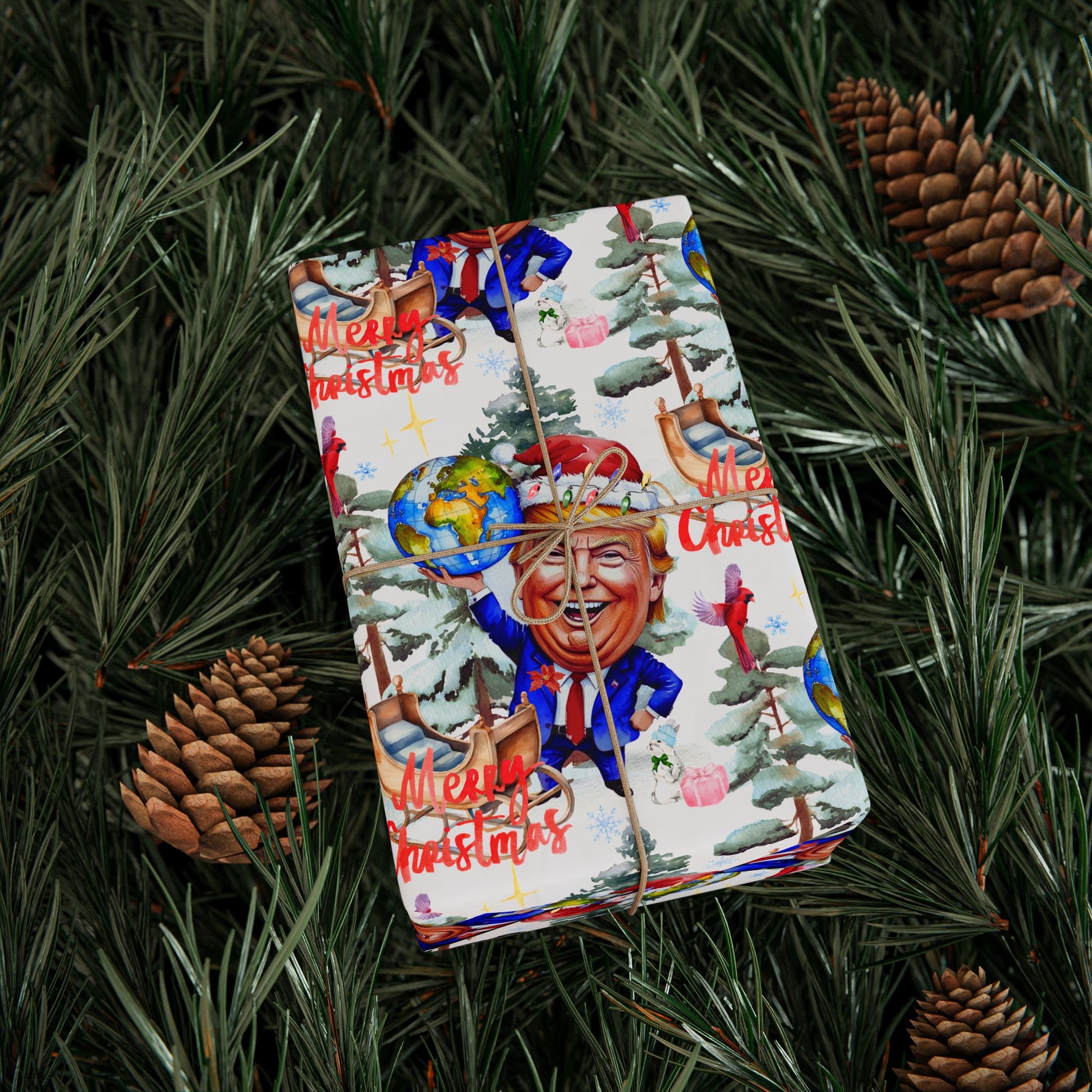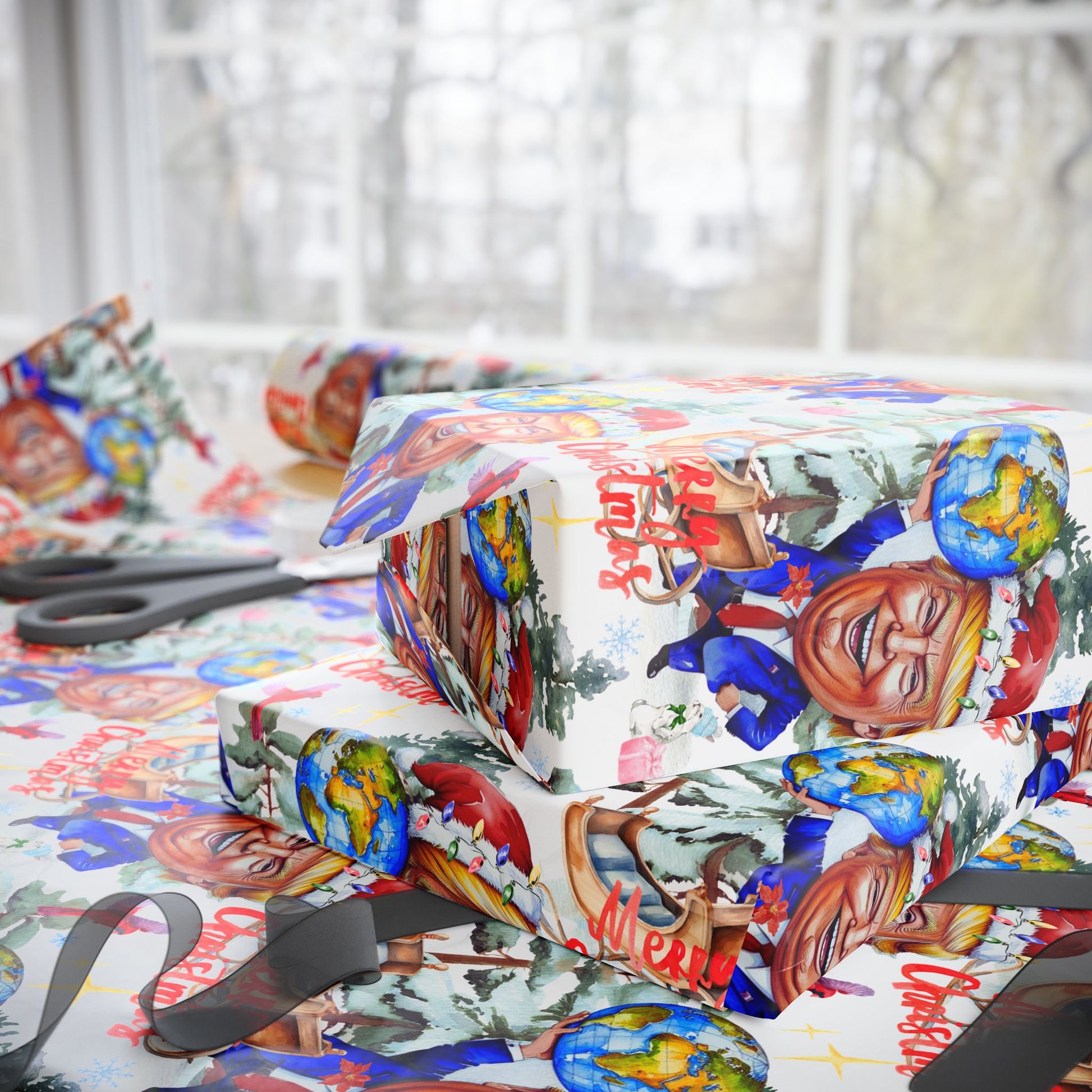 President Holiday Wrapping Paper Roll, President Donald Festive Gift Wrap, Santa President Christmas Decor